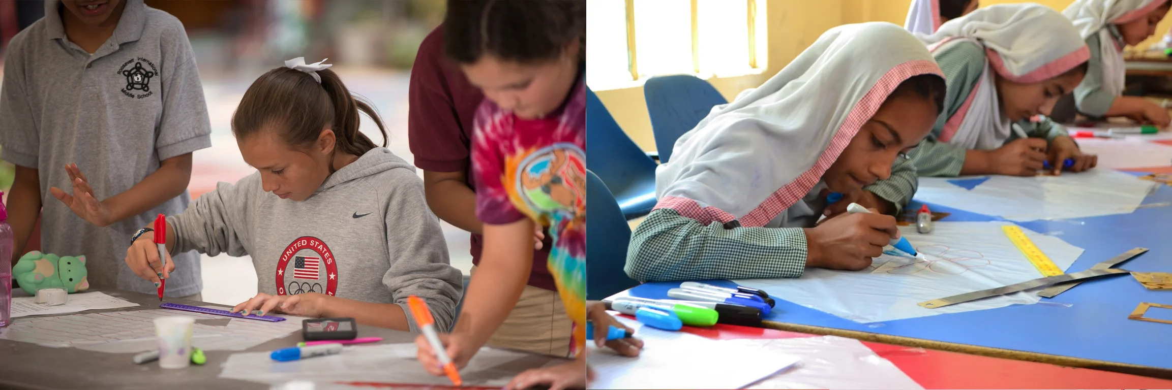 Photo credits: Left: Val Dostalek, Roosevelt International Middle School, San Diego, CA Right: Ikaramullah, Sonia Shah Memorial School, Kangra, Pakistan